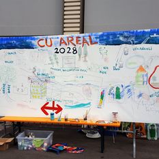 Auf einer Leinwand konnten Gross und Klein gleich selbst zeichnerisch umsetzen, was auf dem Areal unten am See entstehen soll.